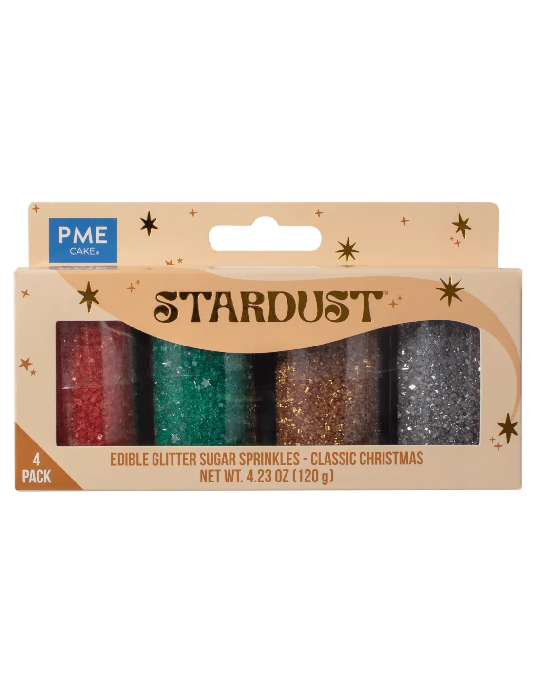 Set 4 botes purpurina comestible y estrellas Navidad PME
