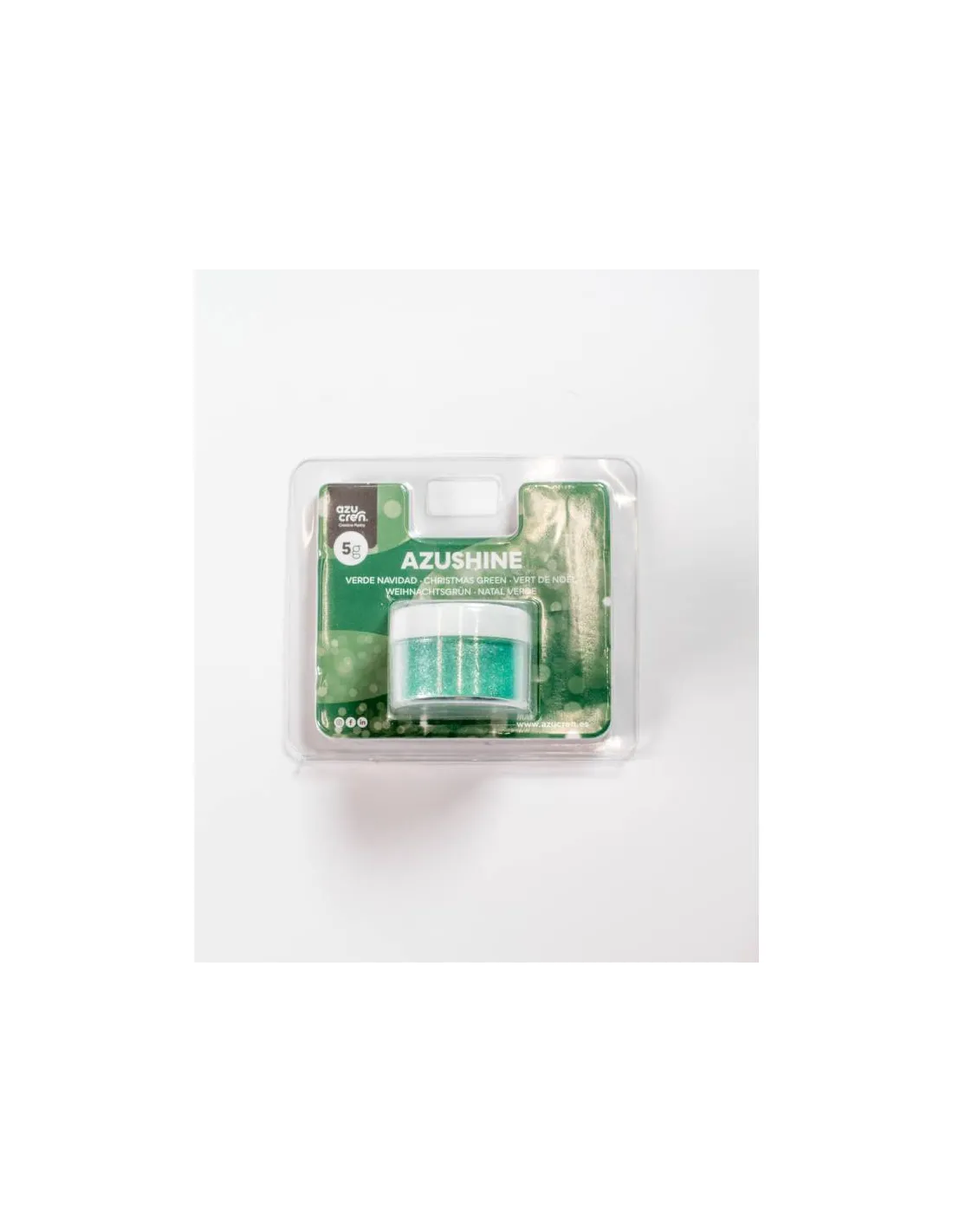 Purpurina comestible verde en polvo de Azucren 5 g para dar un bonito brillo a tus creaciones.