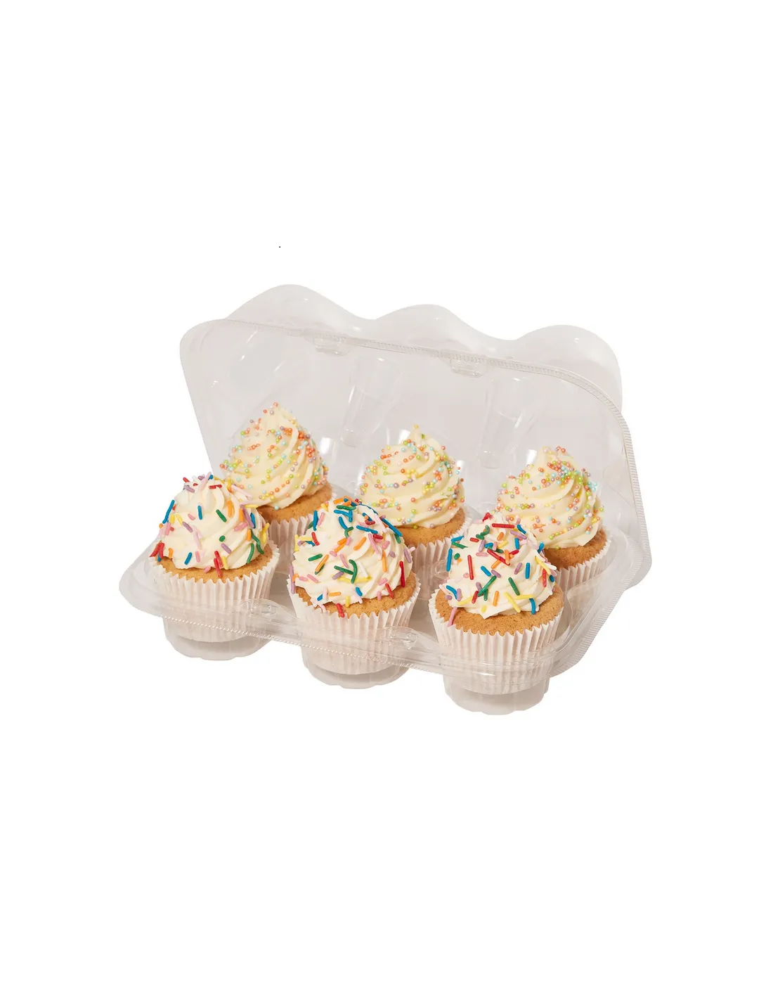 Set de 3 cajas con tapa, fabricadas en plástico libre de BPA, perfectas para transportar 6 cupcakes.