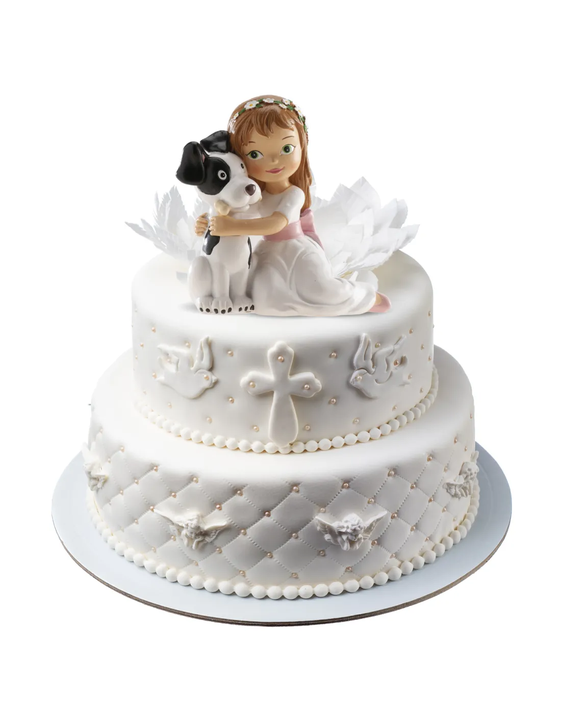 Figura niña comunión sentada con perro Dekora