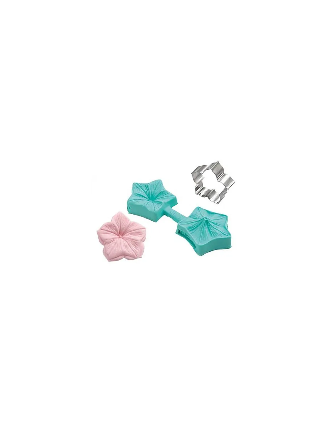 Sólo tienes que cortar el fondant con el cortador de petunia, colocar la flor en la parte hueca del molde de silicona y plegar el marcador. Quita la flor del marcador y ¡lista para decorar!