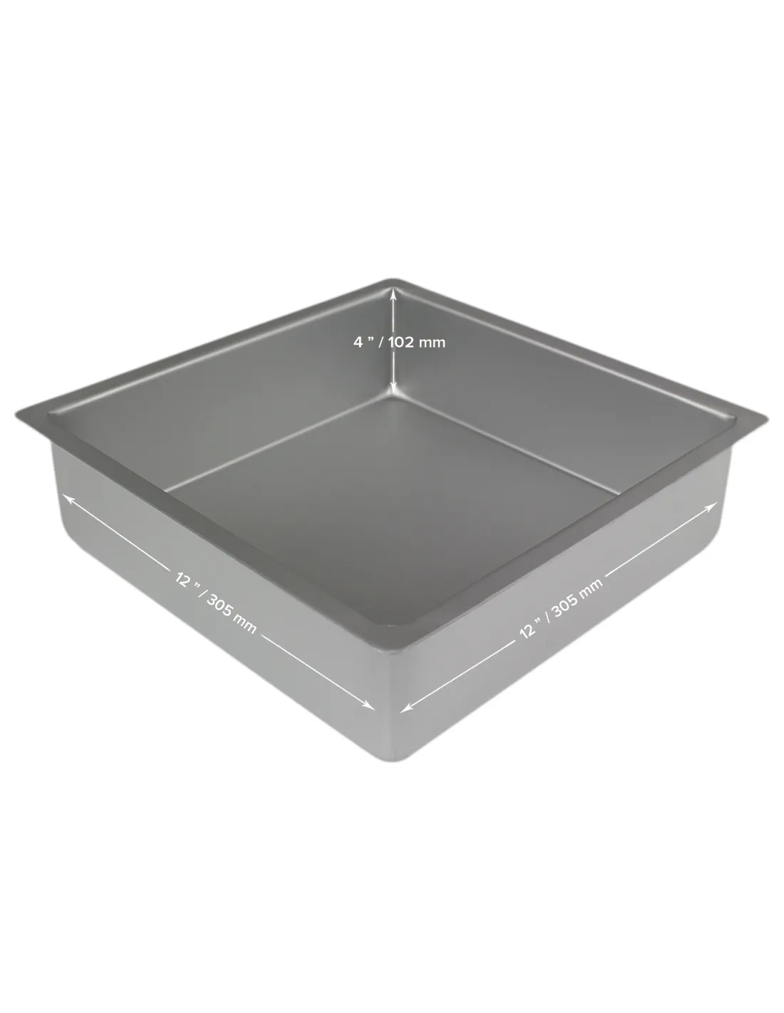 Molde cuadrado de 30 cm fabricados de aluminio anodizado no reactivo que los hace fáciles de usar, limpios y resistentes.