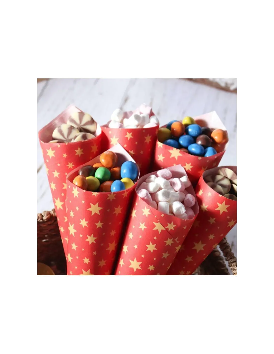 Set de 12 papeles encerados rojos con estrellas doradas, perfectos para hornear, envolver ó presentar tus dulces en Navidad.