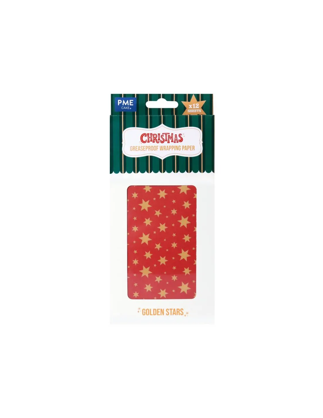 Set 12 papeles encerados Rojos con Estrellas Doradas Navidad PME