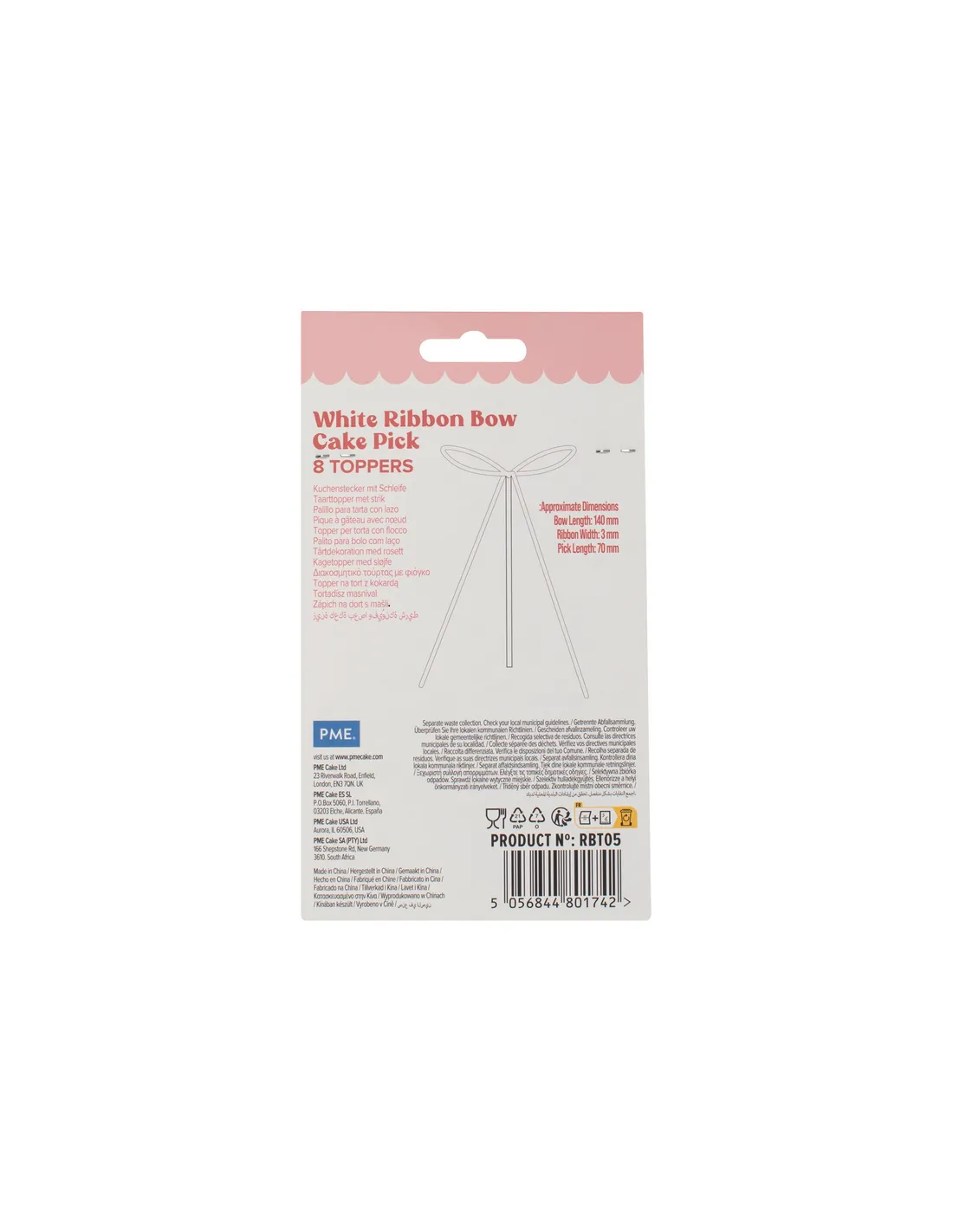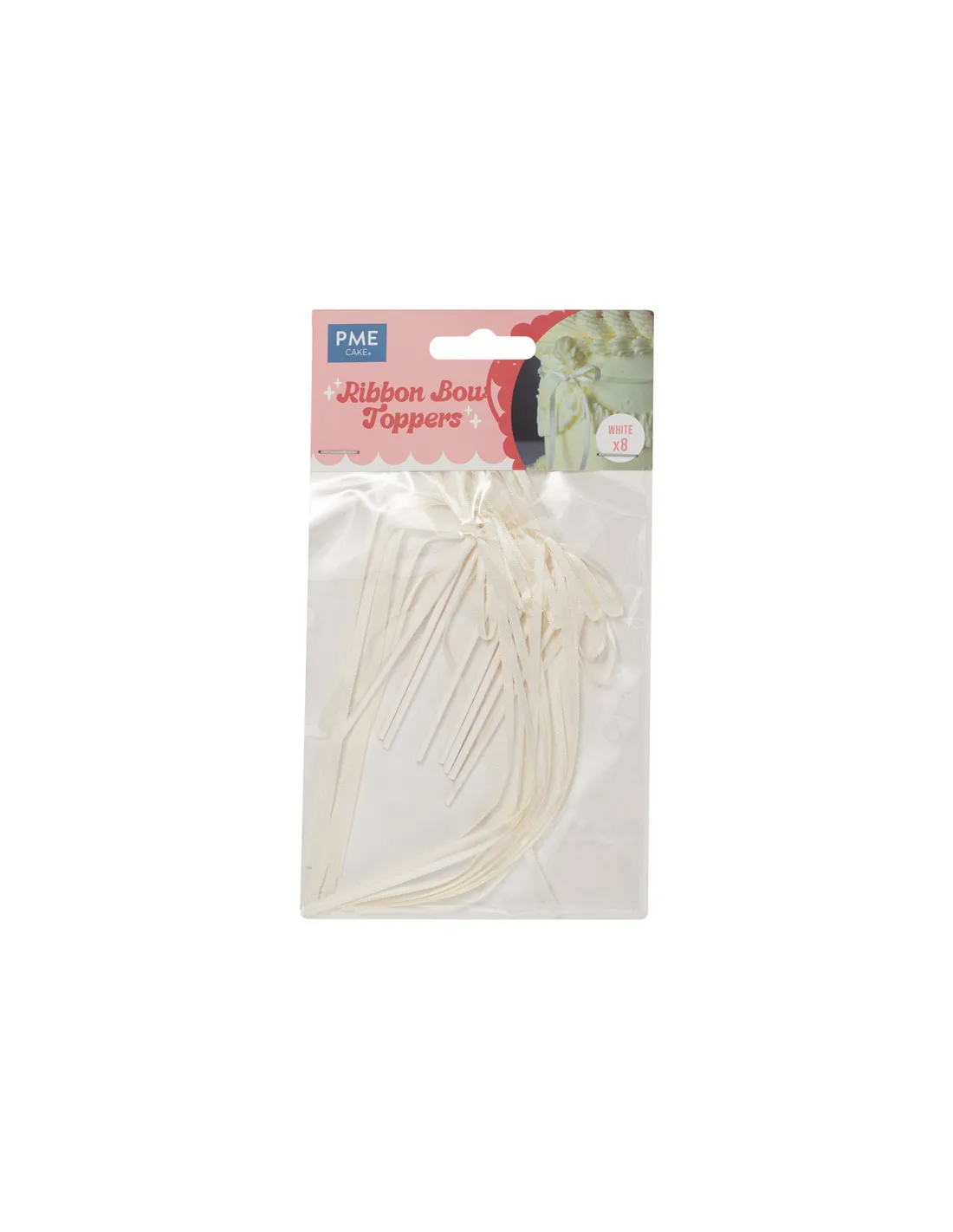 Adorna elegantemente tus tartas con estos encantadores toppers de cinta Blancos de PME.