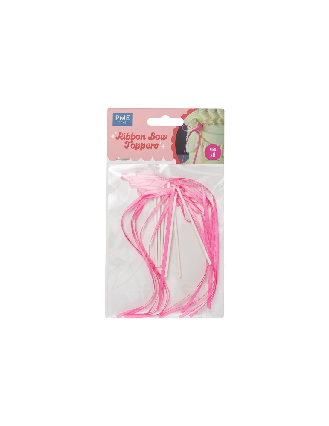 Adorna elegantemente tus tartas con estos encantadores toppers de cinta rosa de PME.