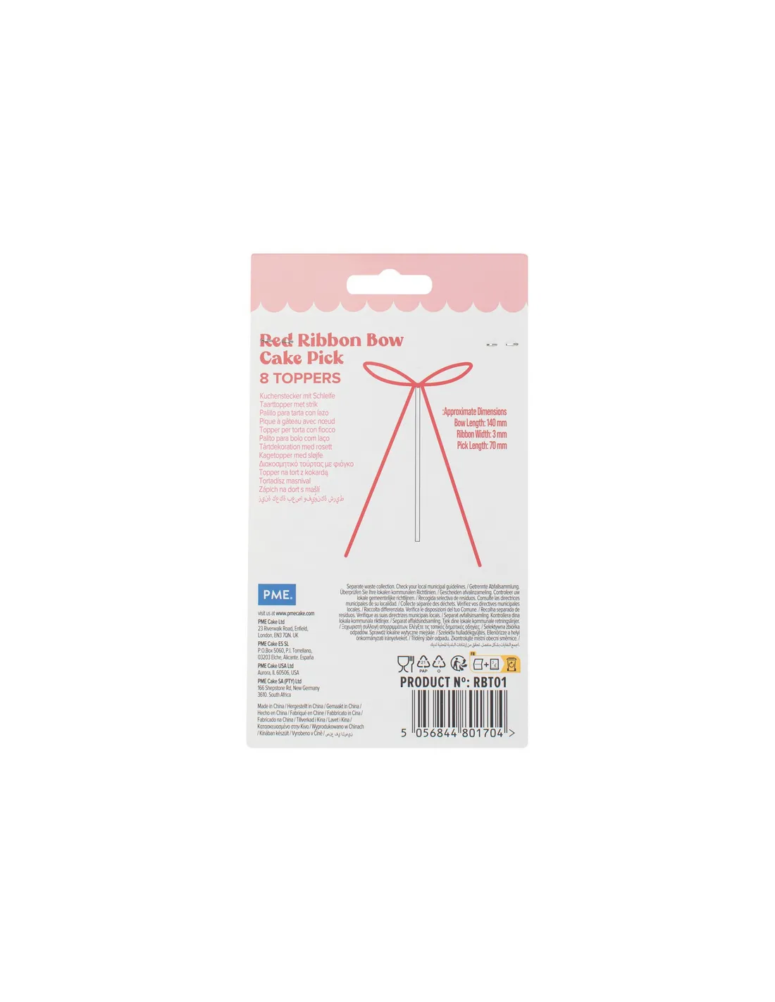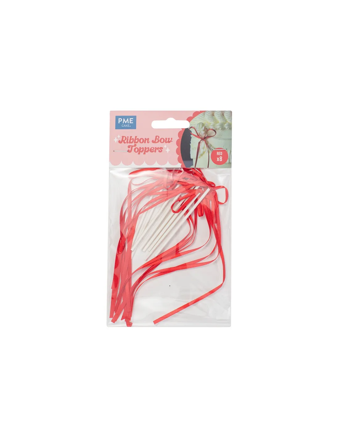 Adorna elegantemente tus tartas con estos encantadores toppers de cinta rojo de PME.